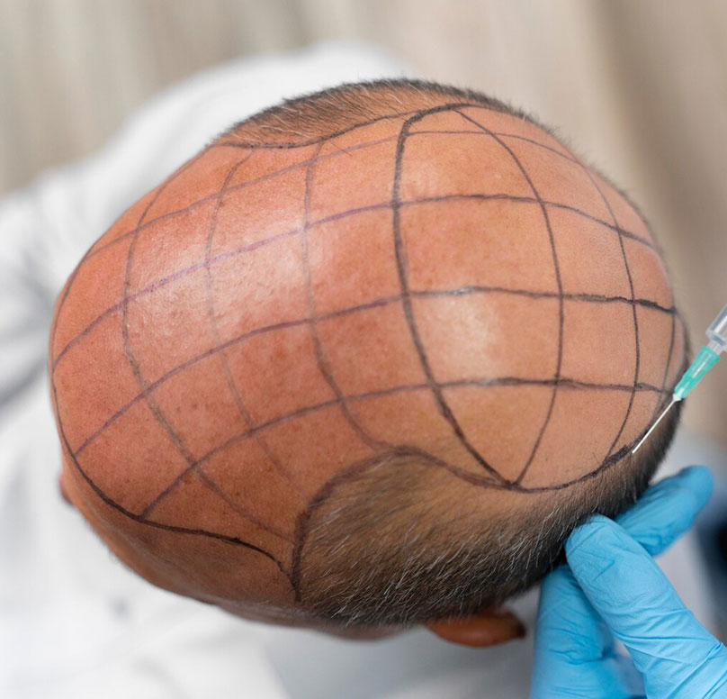 A hair transplant moves healthy hair roots (grafts) from a donor area (usually the back or sides of the scalp) to thinning or bald areas.